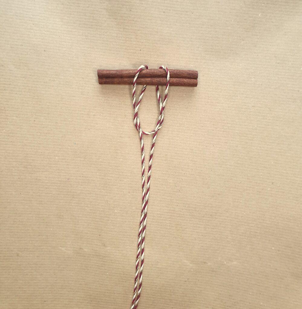 Prva izmed tehnik, katero vam bom predstavila, je Lark’s head vozel in jo uporabimo pri samem snovanju katerega koli makrame izdelka, saj s to tehniko privežemo vrvice na palico, karabinček, cimetovo palčko oziroma kjerkoli bomo delali makrame. Lark’s head vozel tako predstavlja osnovo. Poleg tega, da ga uporabljamo kot začetek, ga uporabimo tudi kot eno izmed tehnik, ko dodajamo nove vrvice pri izdelovanju.
